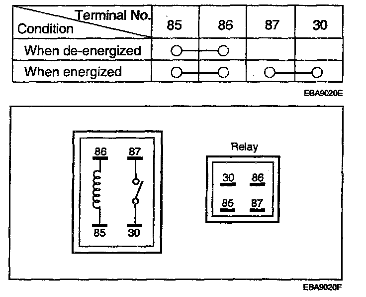 STARTER RELAY CHECKRemove the starter relay and check continuity between the terminals. If the continuity is not as specified, replace the relay.