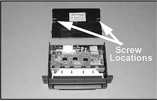 9. Remove the 2 top cover mounting screws, cut the part number sticker on the back along the edge of the cover, and remove the cover.