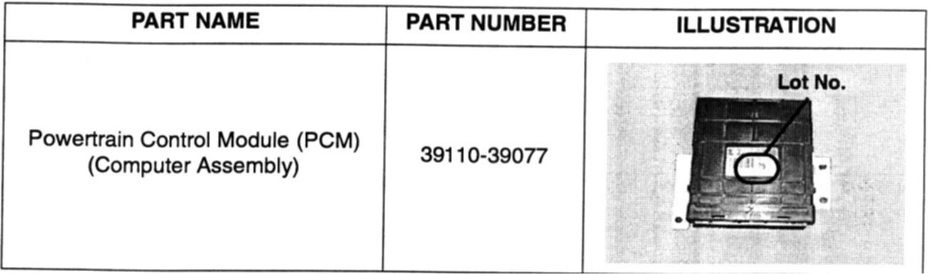 AFFECTED PCM LOT NO. IDENTIFICATION