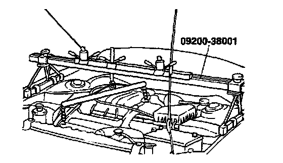 7 Attach the special tool, engine support fixture, (09200-38001) to the engine hooks.