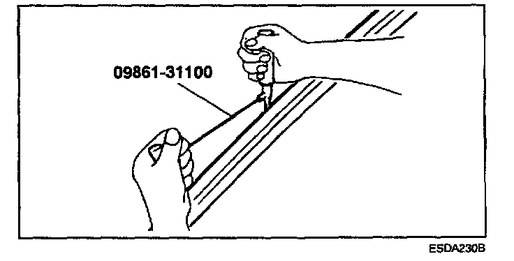 7. Take out the windshield glass with the special tool (09861 - 31400).