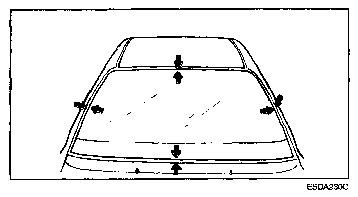 4. In order to protect the body (paint surface), apply cloth tape around to body flange the installed rear window glass.