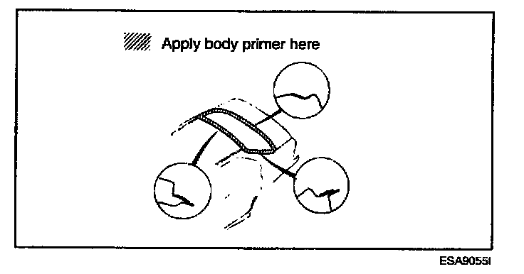 9. Apply a light coat of body primer to the original sealant remaining around the window opening flange.
