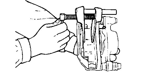 CAUTION: Do not depress the brake pedal while disassembling the pads.