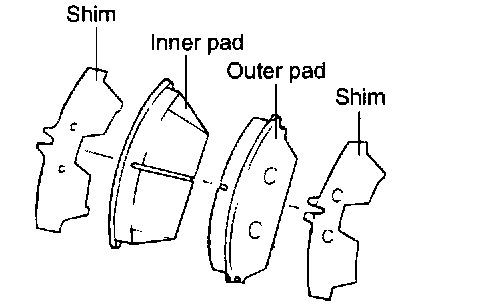 4. Install the new pads. The shims are attached to the each pad as illustrated.