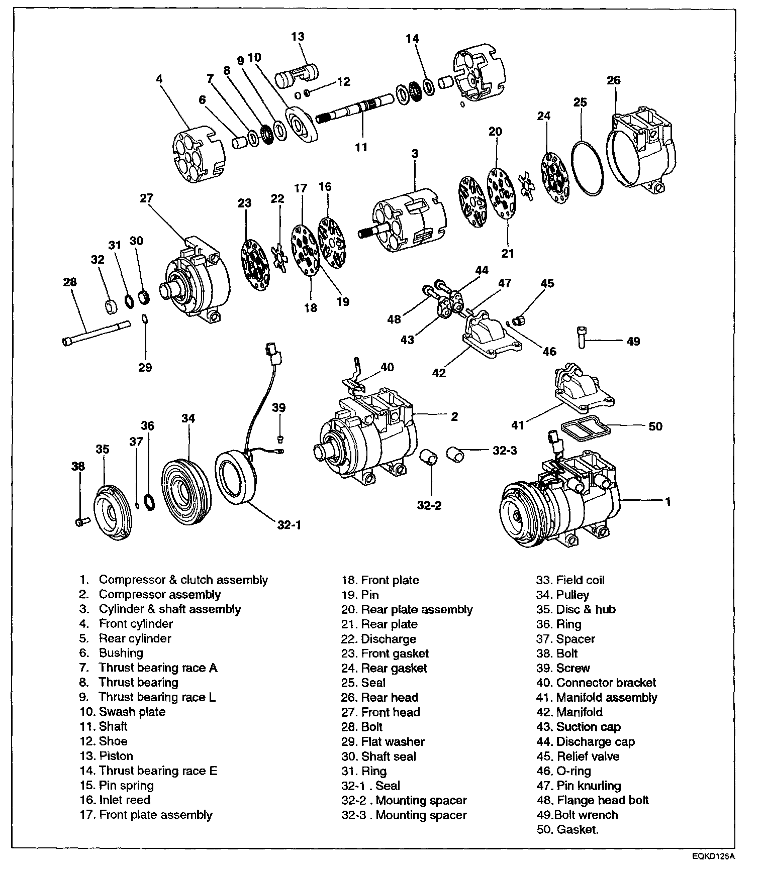 2. Install the pulley and bearing on the compressor.