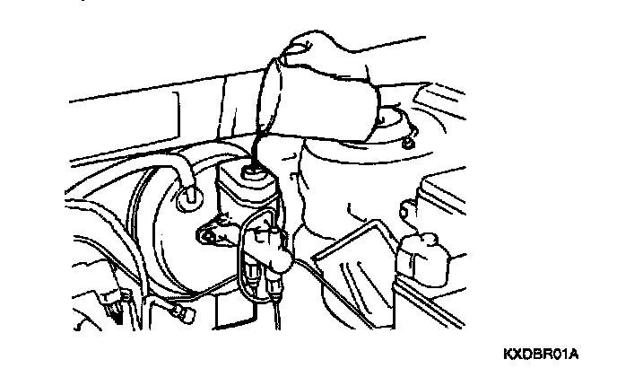 BLEEDING THE BRAKE SYSTEM1. Remove the reservoir cap and fill the brake reservoir with brake fluid.