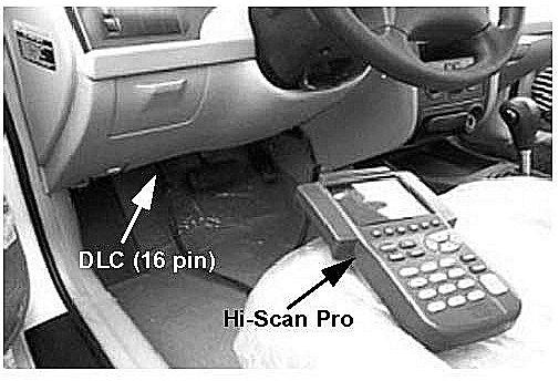 3. Plug the DLC cable from the Hi-Scan Pro into the data link connector (16 pin connector) under the driver's side instrument panel.