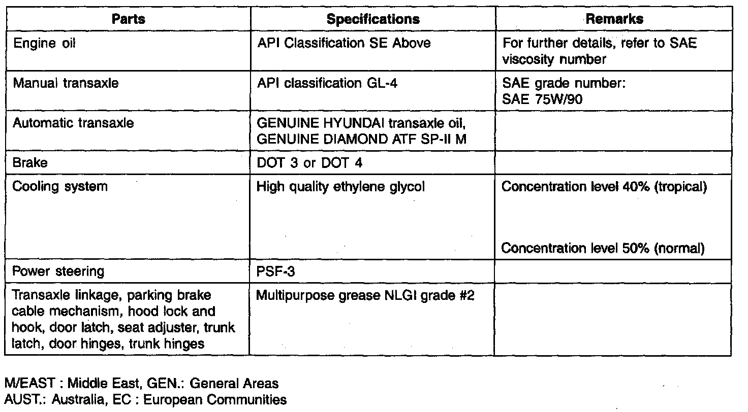 General Fluid Specifications