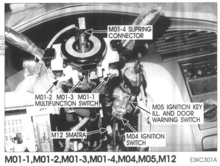 M01-1, M01-2, M01-3 Malfunction Switch, M01-4 Slipring Connector, M04 Ignition Switch, M12 Smatra: