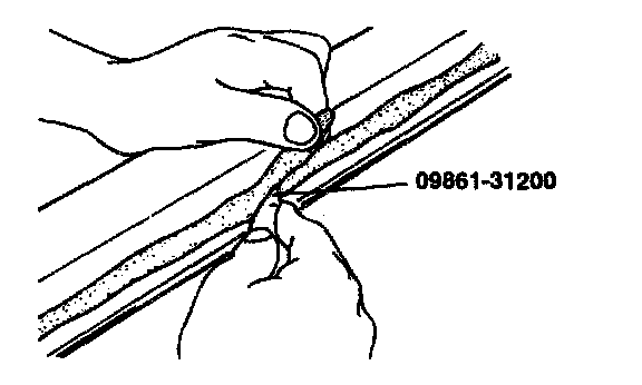 CAUTION: Be careful not to remove more adhesive than necessary, and also not to damage the paintwork on the body surface with the knife. If the paintwork is damaged, repair the damaged area with touch-up paint.