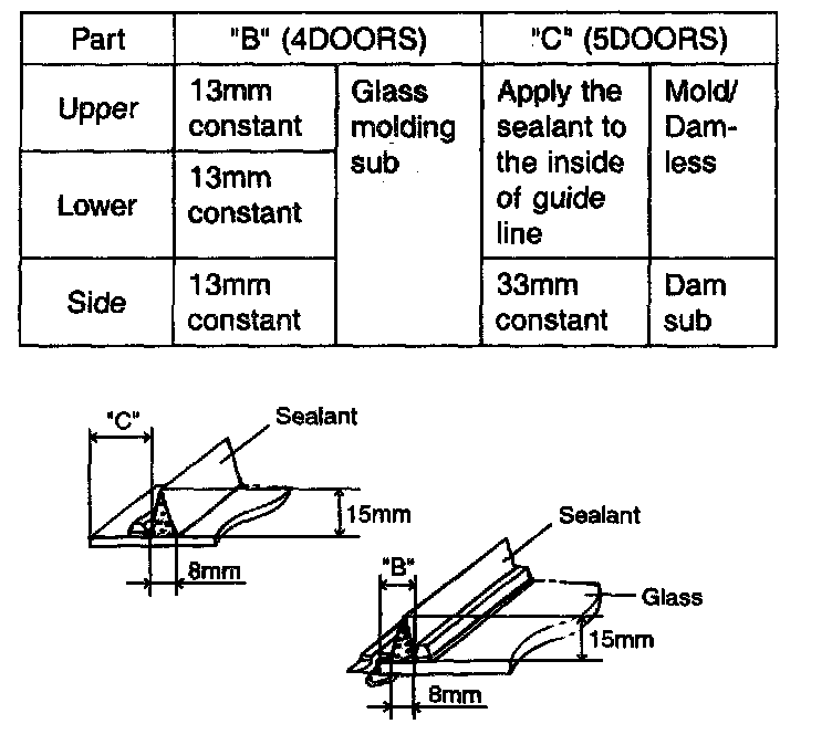 1. Never touch the primed surface with your hand. If you do, the adhesive may not bond to the glass properly, causing a leak after the rear window glass is installed.