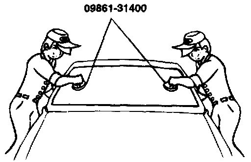 1. Using a knife or the special tool (09861-31200), cut the old sealant smoothly to a thickness of about 2 mm (0.08 in.) on the bonding surface around the entire rear window glass.
