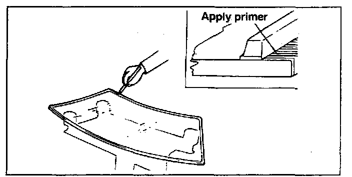 1. Never touch the primed surface with your hand. If you do, the adhesive may not bond to the glass properly, causing a leak after the windshield glass is installed.