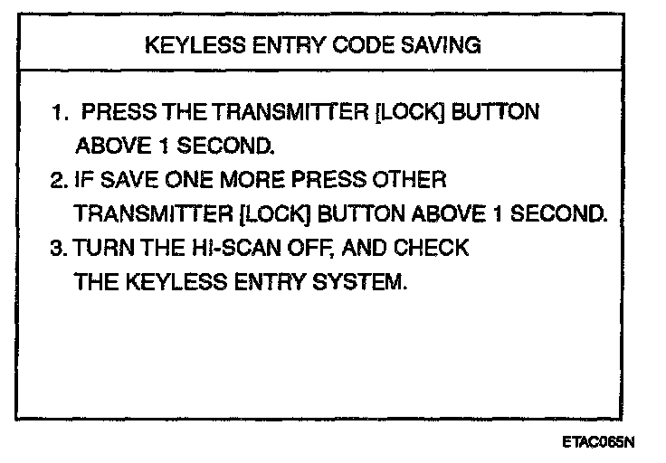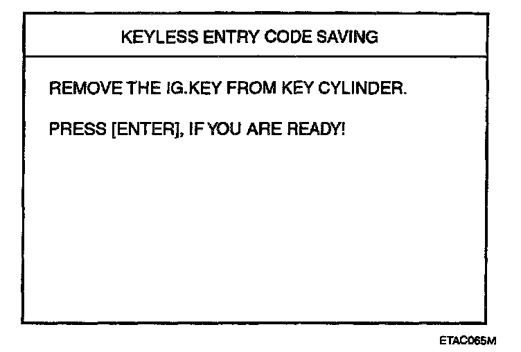 5. After removing the ignition key from key cylinder, push "ENTER" key to proceed to the next mode for code saving.