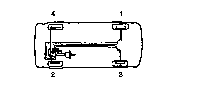 6. Repeat the step 5 until there are no more bubbles in the fluid for each wheel in the sequence shown in the illustration.