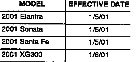 Model: 2001 ELANTRA, SONATA, SANTA FE & XG300