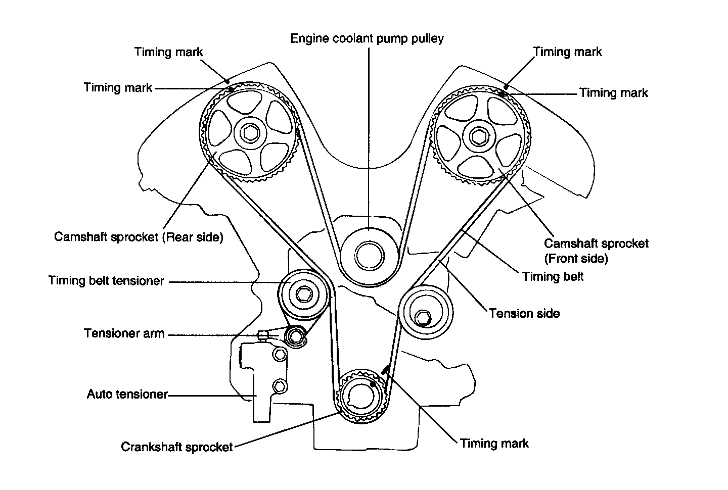 Incorrect removal or installation of the timing belt can result in damage to internal engine components.