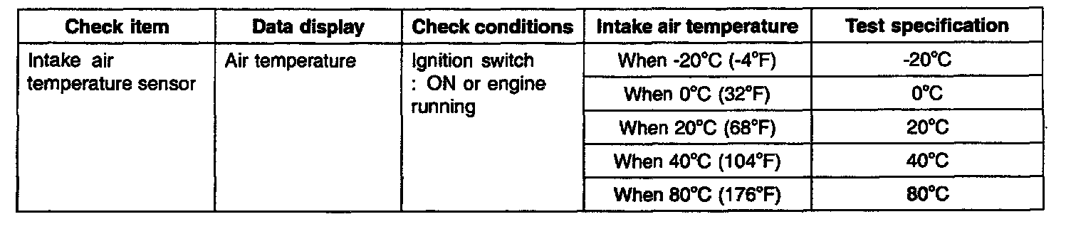1. When the intake air temperature is detected as below -40 °C or higher than 120 °C.