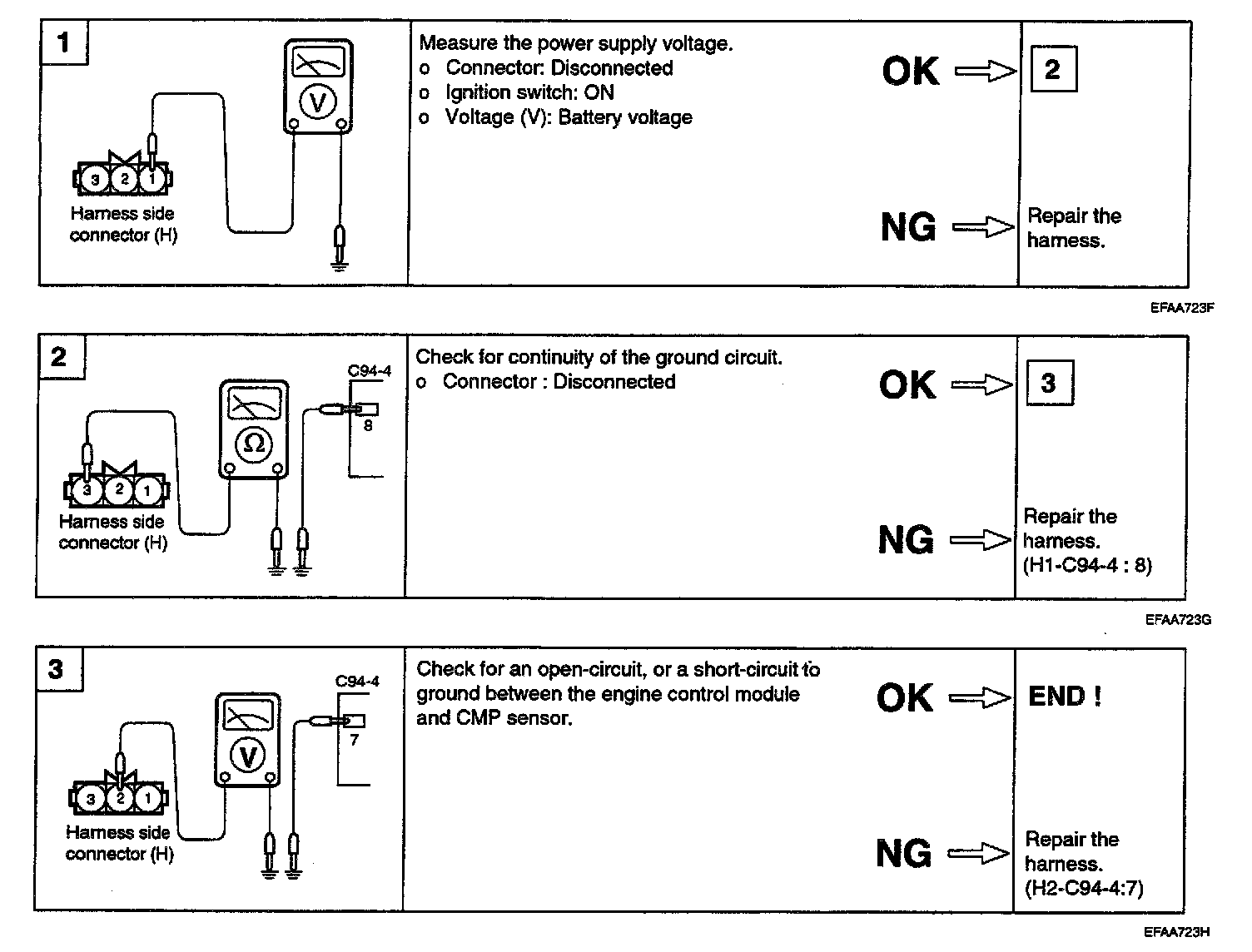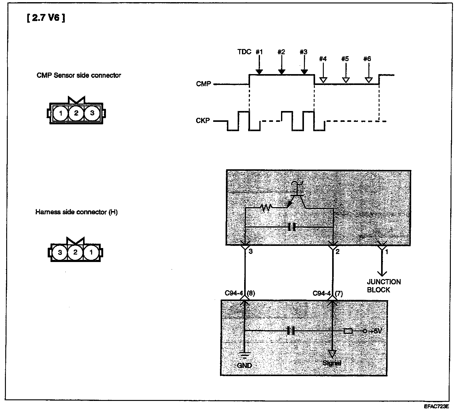 If the camshaft position sensor does not operate correctly, correct sequential injection is not made so that the engine may stall or run irregularly at idle or fail to accelerate normally.