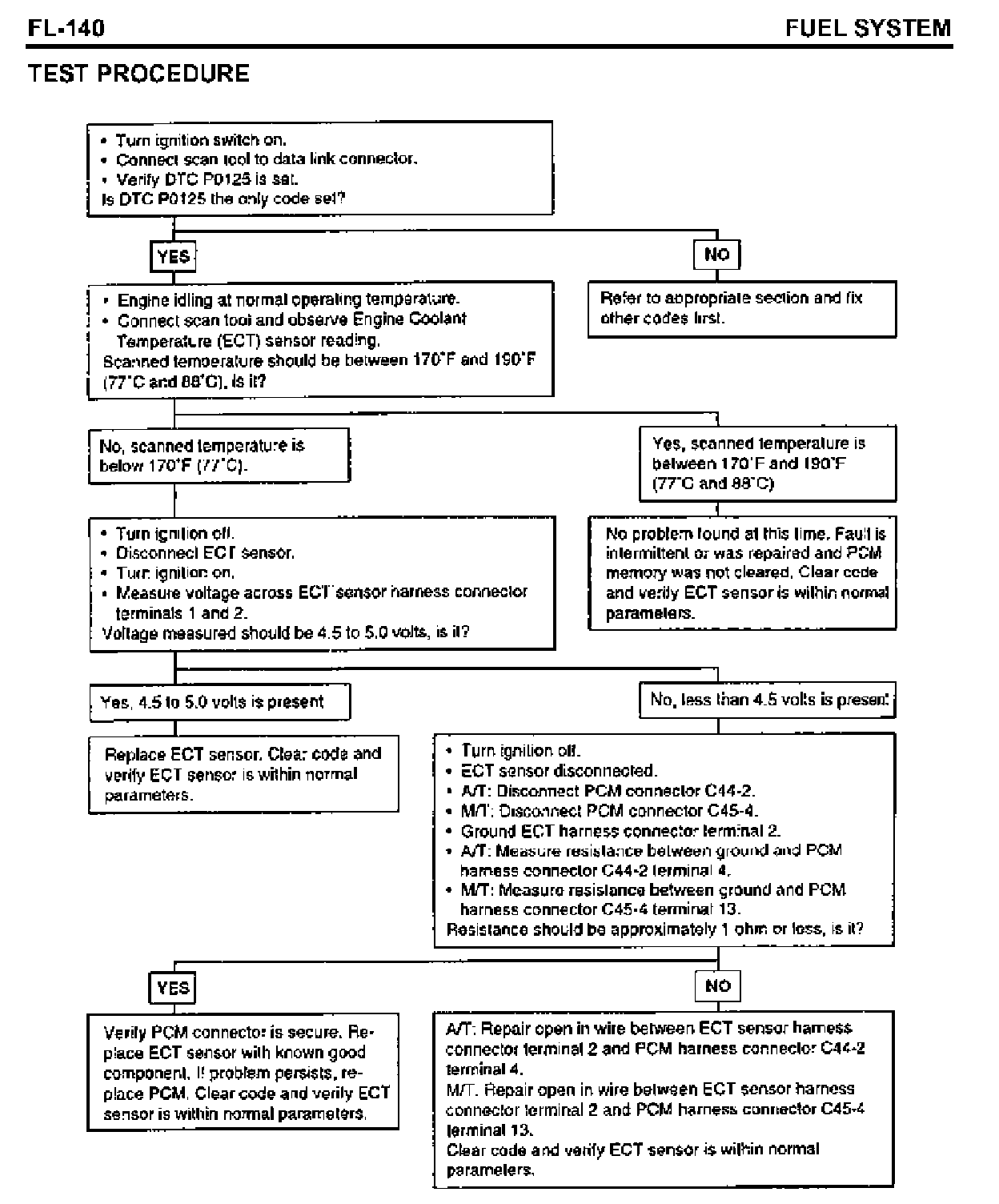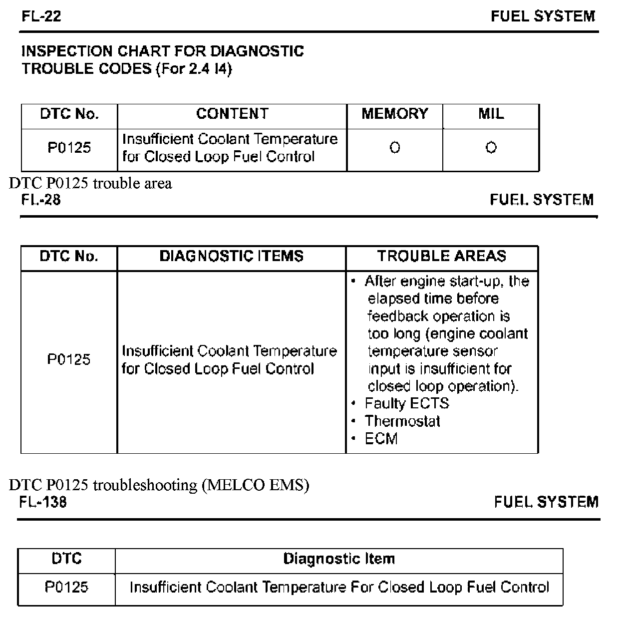 This bulletin corrects the conflicting information for the diagnostic trouble code descriptions, trouble areas to check and troubleshooting guides for DTC P0125.