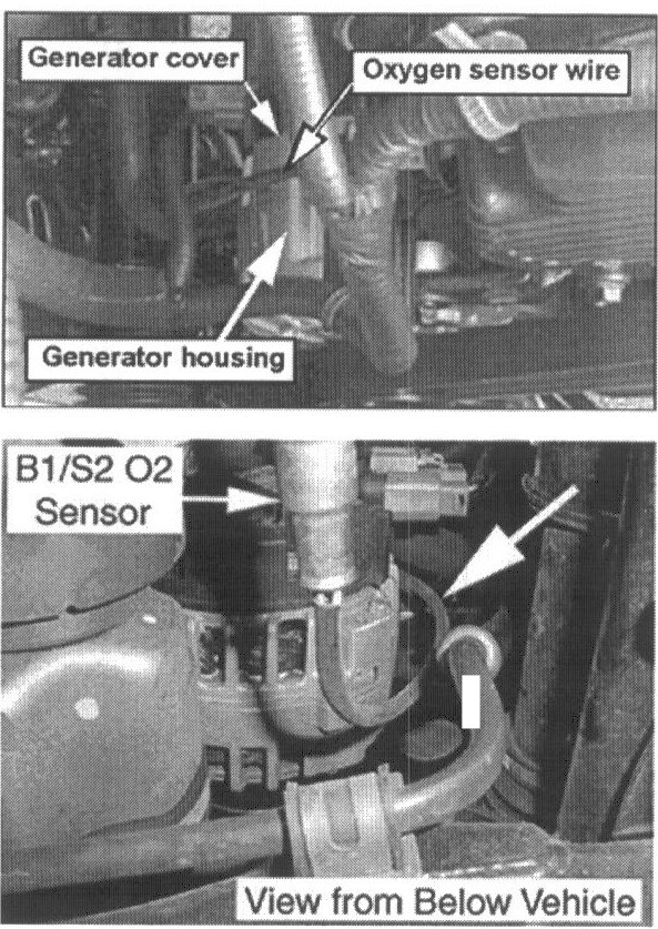 This may cause the oxygen sensor wire to interfere with the generator "B+" terminal and cause damage to the oxygen sensor wiring.