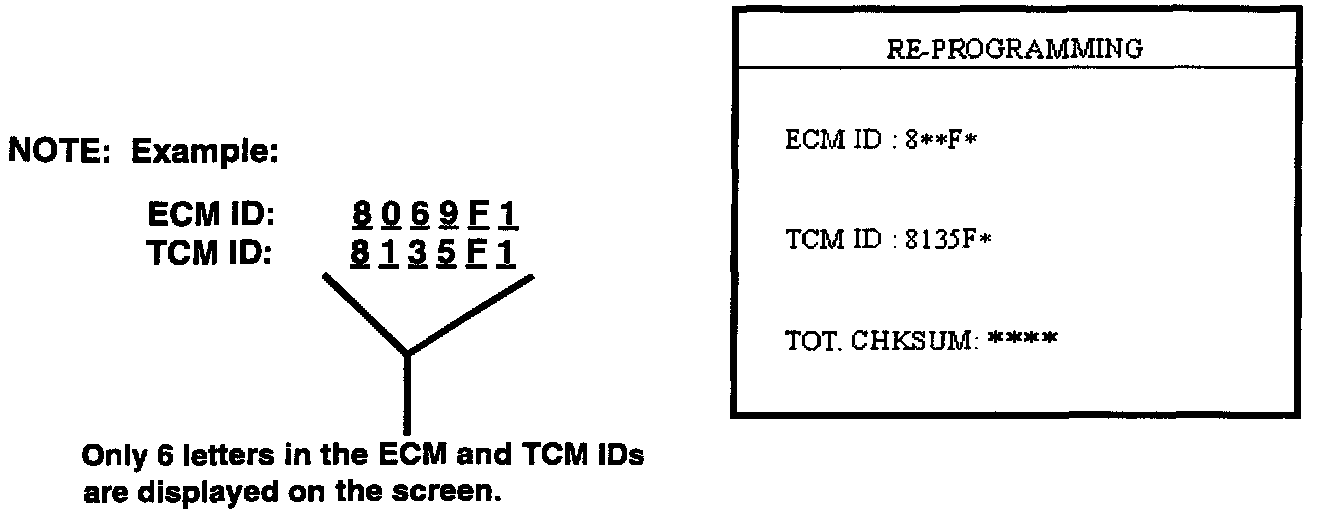 Check the new TCM or ECM/TCM IDs displayed on the screen with the ECM/TCM specifications shown in this TSB to verify that the correct TCM or ECM/TCM program has been downloaded.