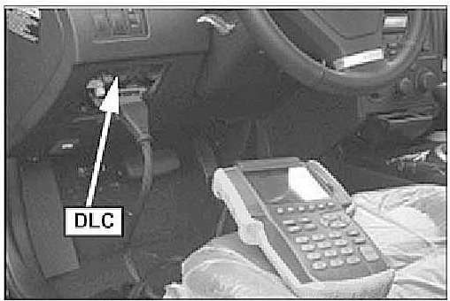 3. Plug the DLC cable from the Hi-Scan Pro into the data link connector (16-pin connector) at the drivers side lower crash pad.