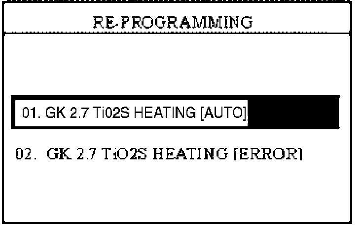 In the event menu option 01. GK 2.7 Ti02S HEATING [AUTO] fails to download the new program, option 02. GK 2.7 Ti02S HEATING [ERROR] must be used.