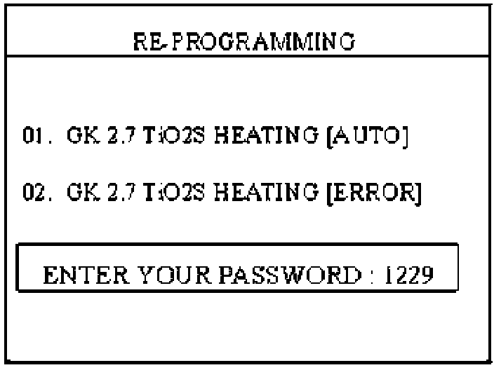 8. Enter 1229 as the password for the automatic update mode and press ENTER.