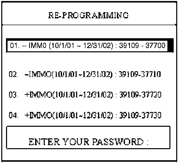 6. Enter the correct password after identifying the vehicle production date and by referring to the table shown in this TSB. In addition, use the ECM IDs written down during the automatic update procedure to confirm the correct ECM version. Then press ENTER.