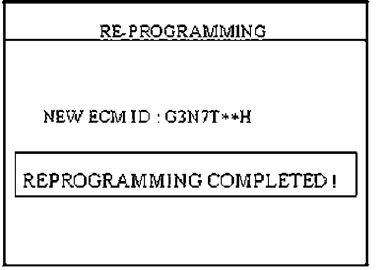9. When the REPROGRAMMING COMPLETED message is displayed, check the new ECM ID displayed on the Hi-Scan Pro screen to verify that the correct ECM software has been downloaded.