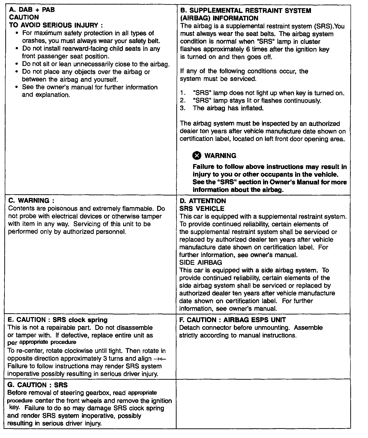 A number of caution labels relating to the SRS are found in the vehicle, as shown in the following illustration. Follow the label instructions when servicing the SRS.