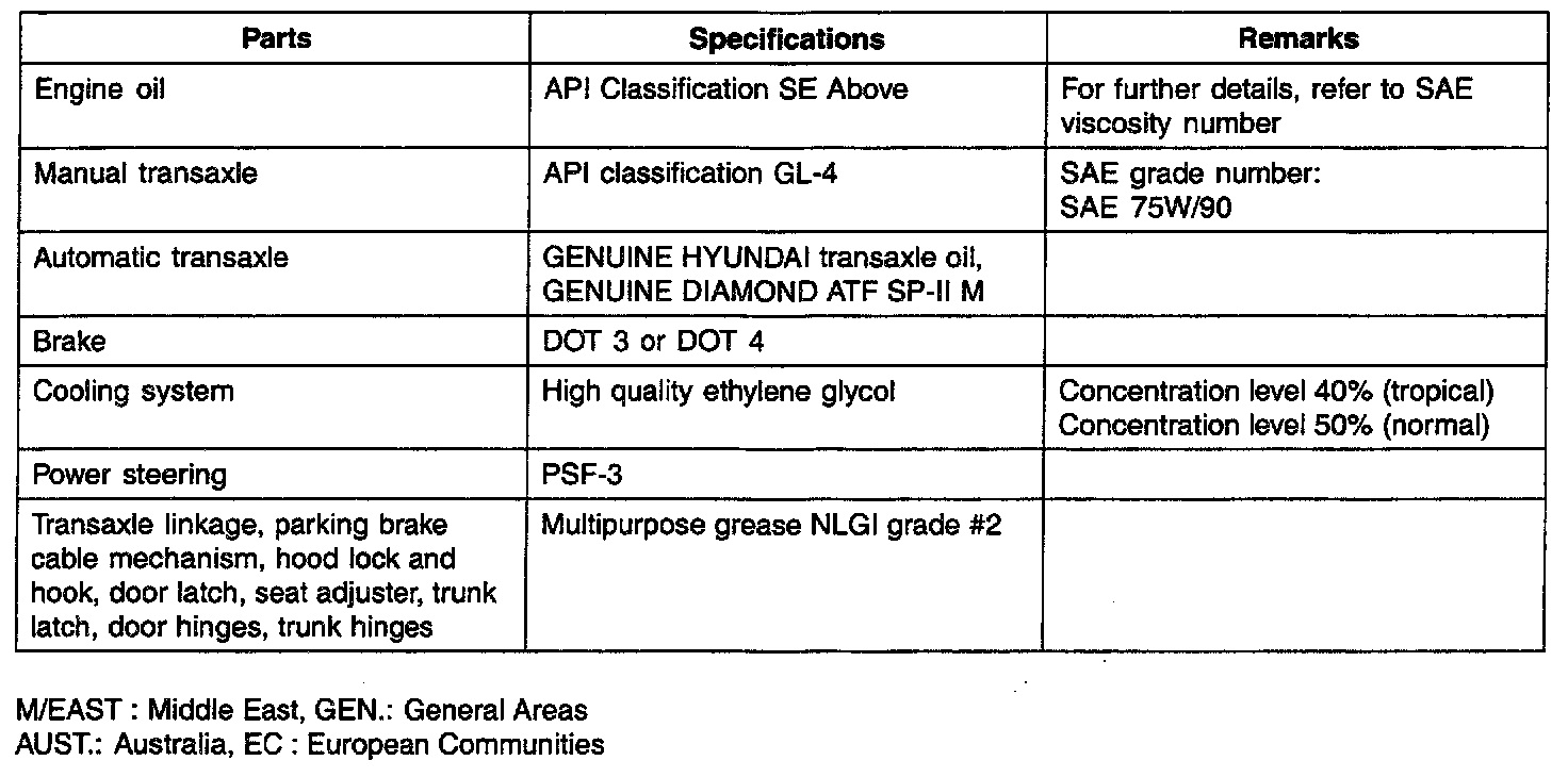 General Fluid Specifications