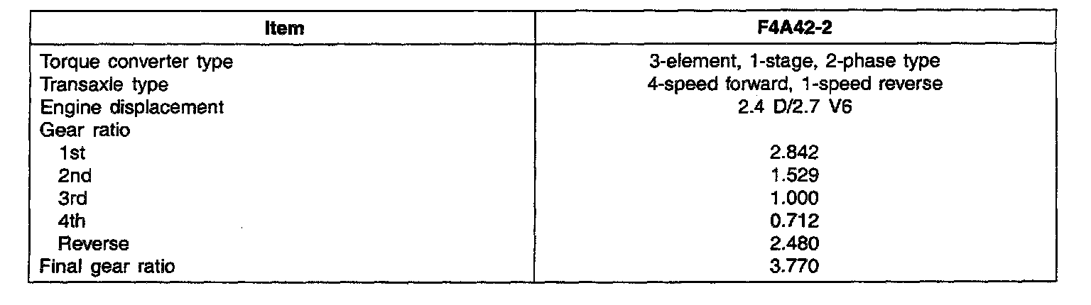 SPECIFICATIONS(A/T)Torque converter type 3-element, 1-stage, 2-phase type