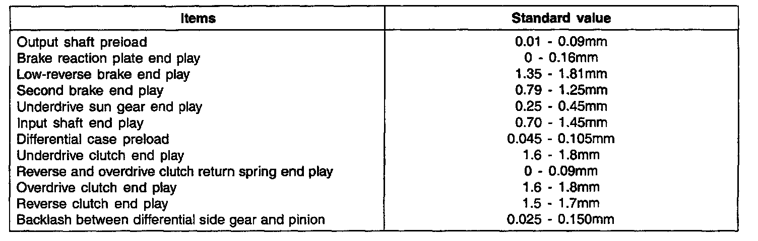 Reverse And Overdrive Clutch Return Spring End Play 0 - 0.09 mm