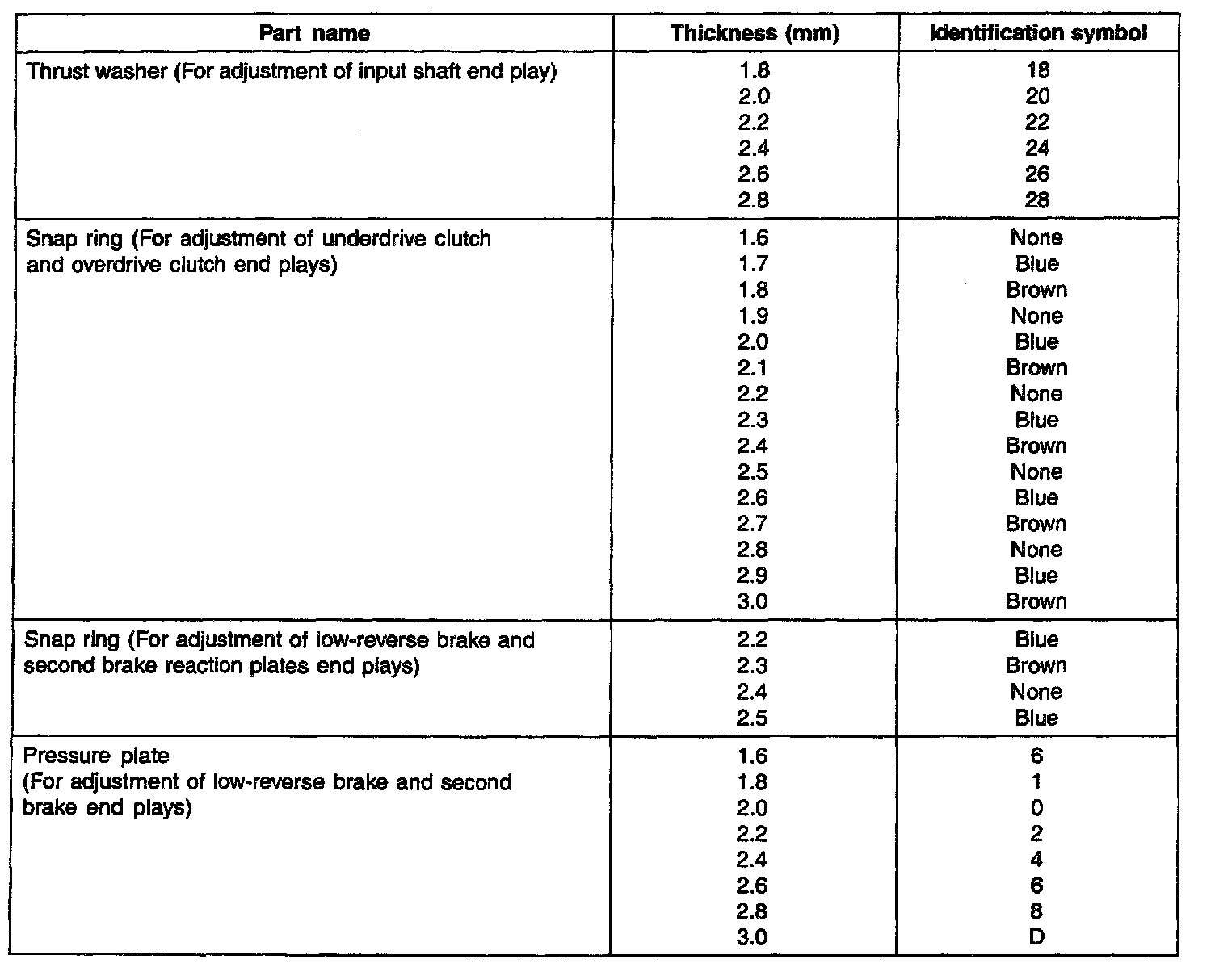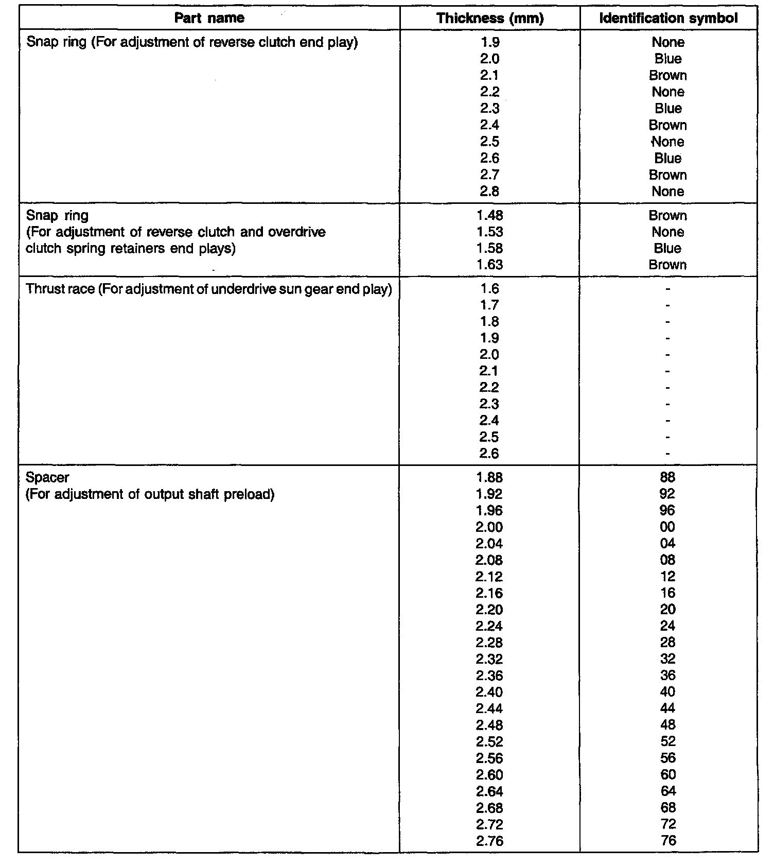 Underdrive Clutch End Play 1.6 - 1.8 mm