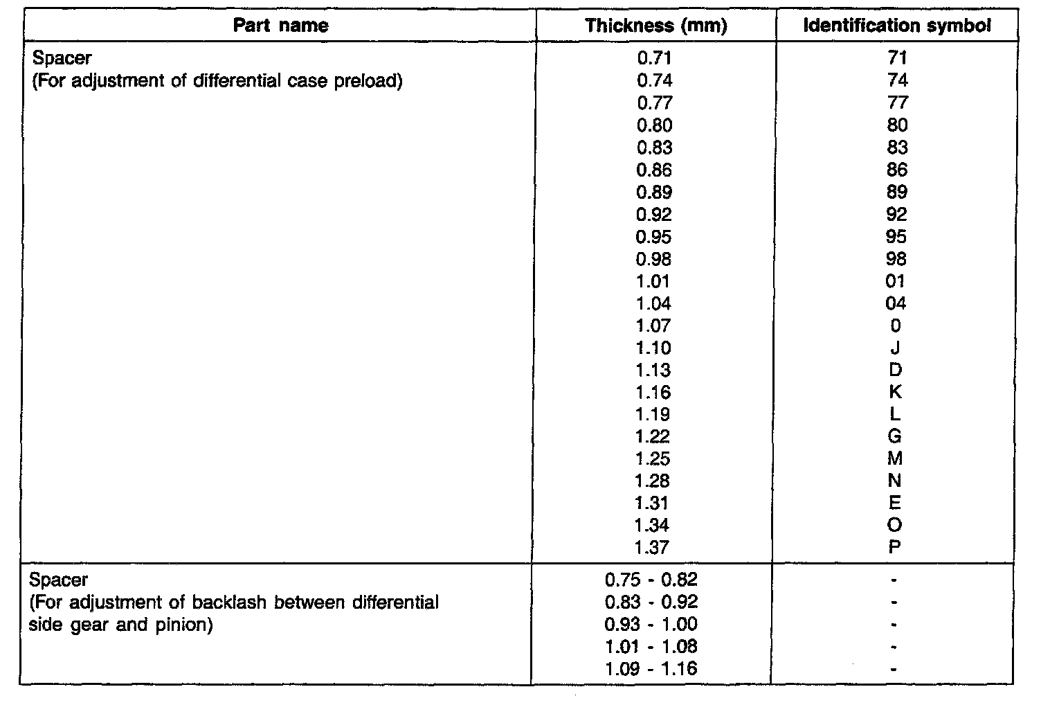 Backlash Between Differential Side Gear And Pinion 0.025 - 0.150 mm