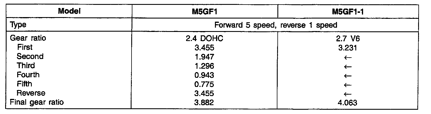 SPECIFICATIONS(M/T)Gear ratio