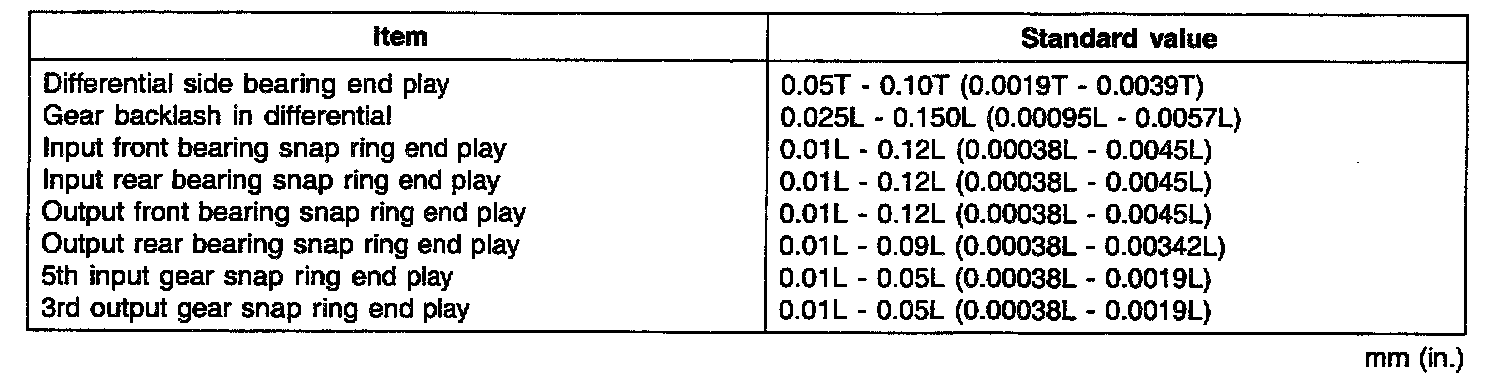 5Th Input Gear Snap Ring End Play 0.01 - 0.05L (0.00038L - 0.0019L)