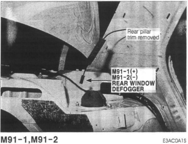 M91-1 Rear Window Defogger (+), M91-2 Rear Window Defogger (-):