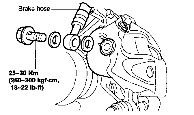 Brake hose mounting oil bolt 25 - 30 (250 - 300, 18 - 22)