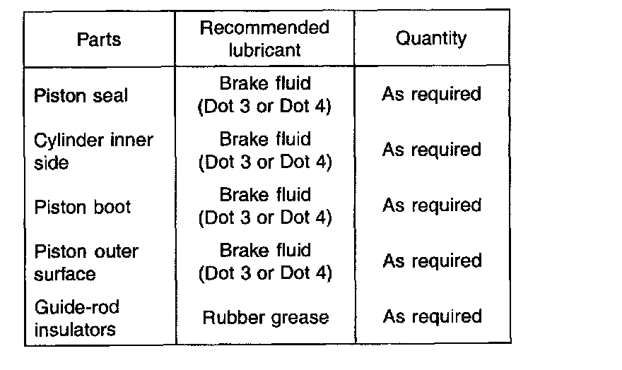 3. Check dust boots for wear c,r damage. If dust or mud has entered the caliper assembly through this seal, the caliper assembly must be replaced.
