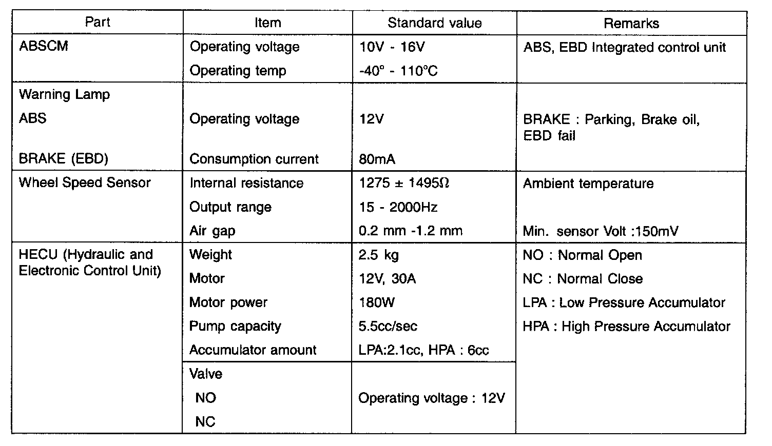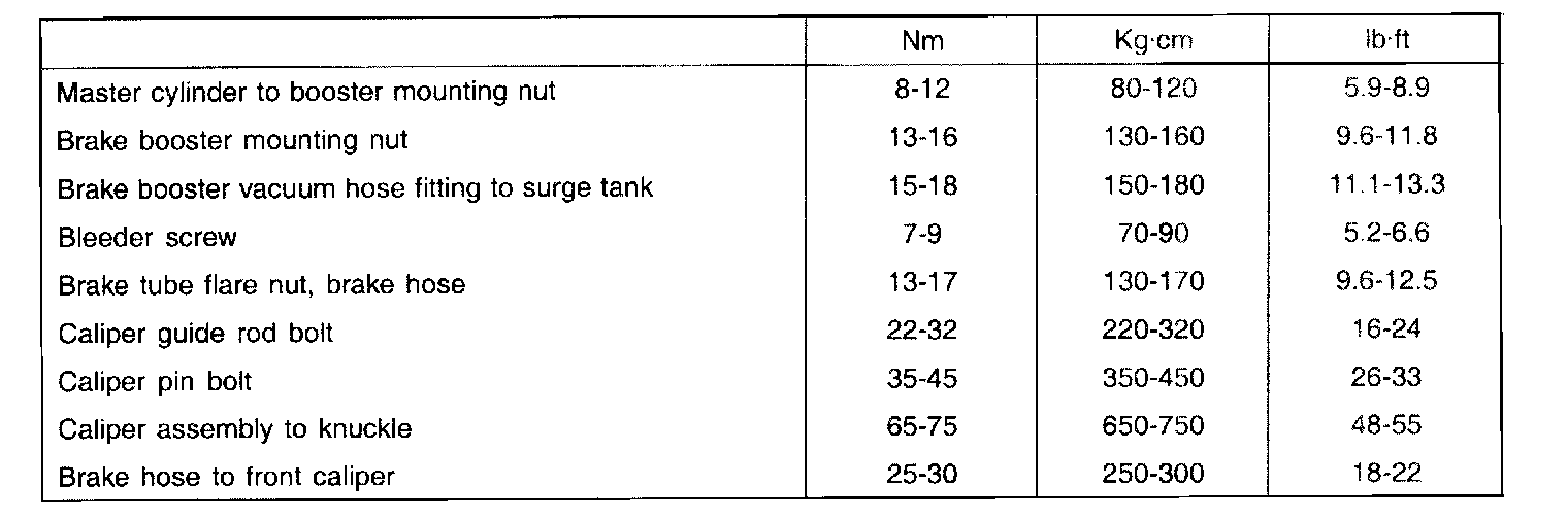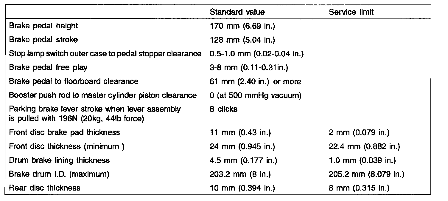 SPECIFICATIONS SPECIFICATION (ABS) SERVICE STANDARD TIGHTENING TORQUE CAUTION: Replace self-locking nuts with new ones after removal.
