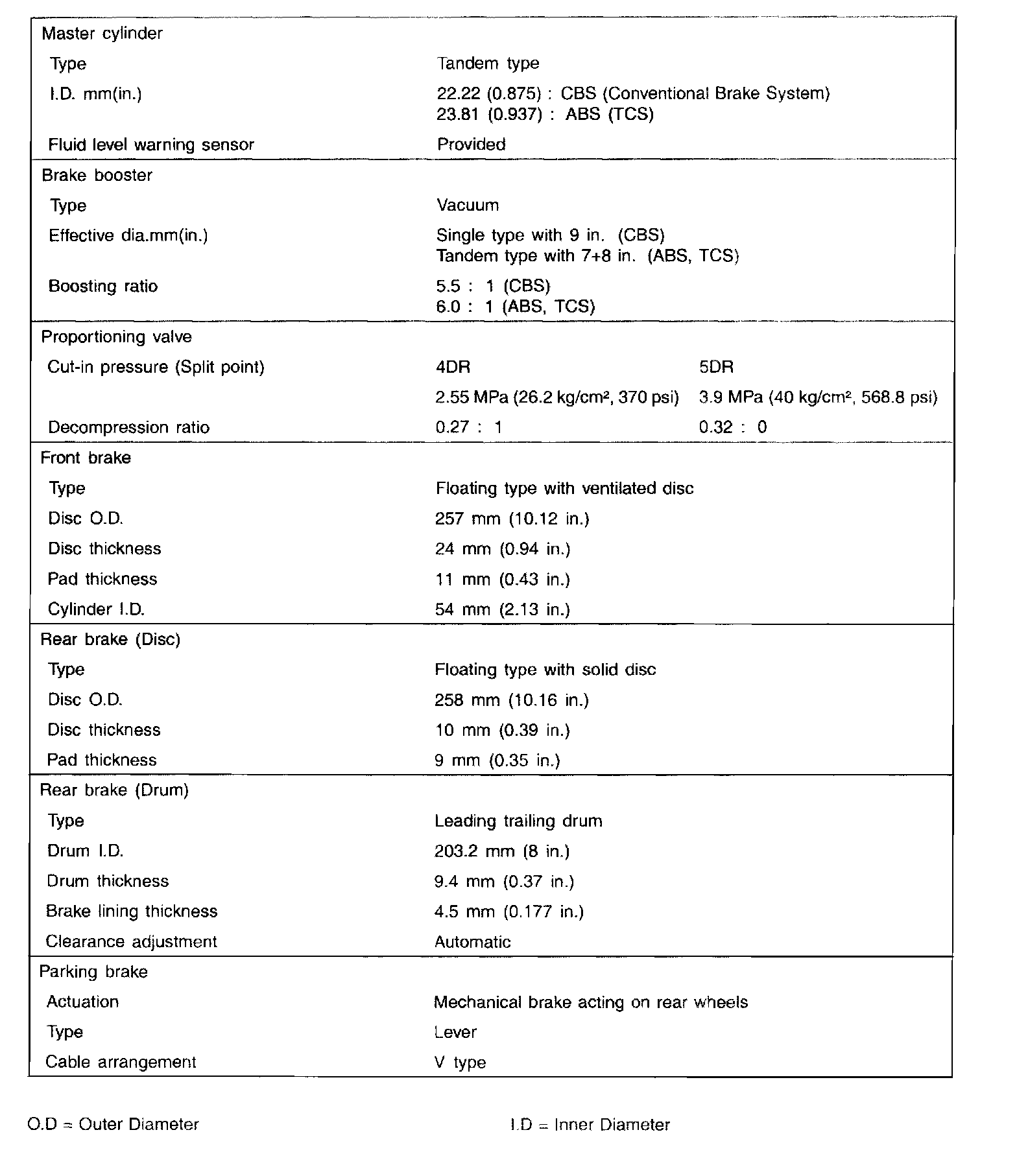 Brakes and Traction Control: Specifications
