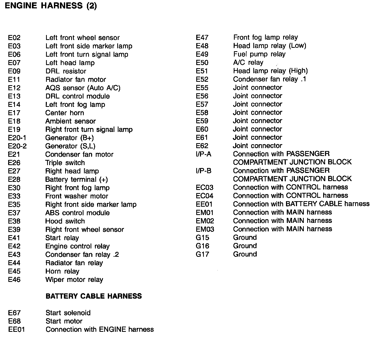 Engine Harness Index: