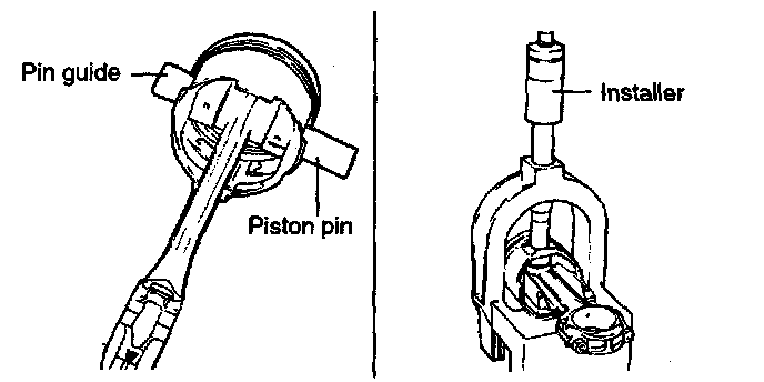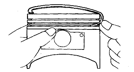 3. Check that the piston pin fits in the piston pin hole. Replace any piston and pin assembly that is defective. The piston pin must be smoothly pressed by hand into the pin hole (at room temperature)