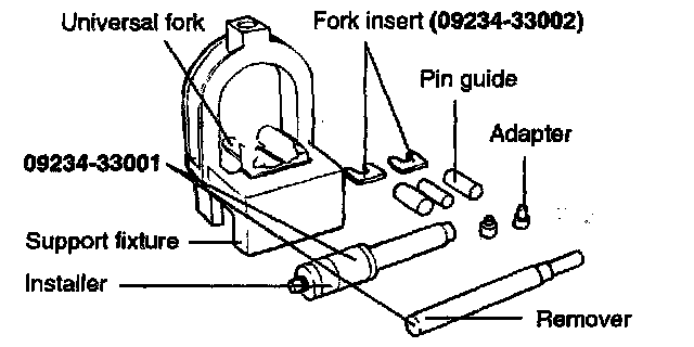 5. To install a new pin, the proper fork inserts must be in place to support the rod.