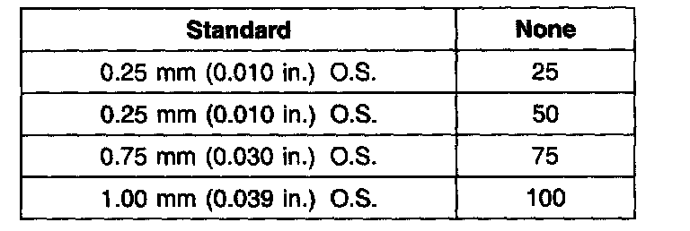 Standard: 0.10 - 0.25 mm (0.0039 - 0.0098 inch)