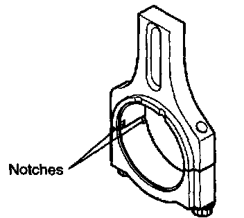 12. When a new connecting rod is installed, make sure that the notches for holding the bearing in place are on the same side.